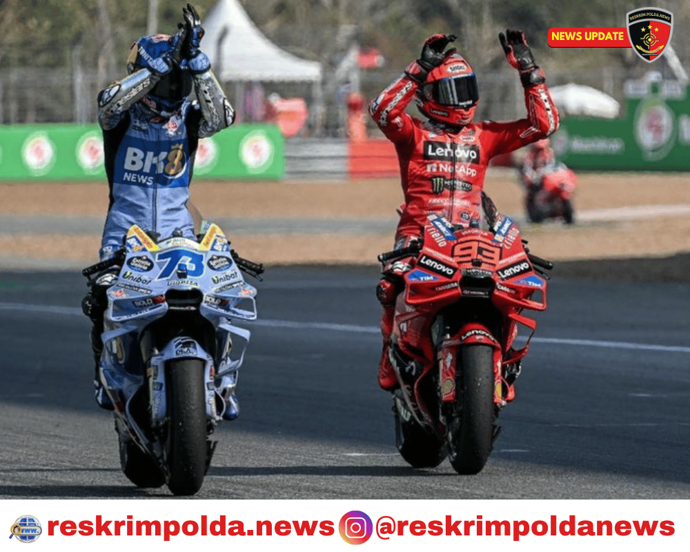 Reskrimpolda.news – Jakarta, Senin 03 Maret 2025 – Di panggung balapan MotoGP Thailand yang digelar pada Minggu, 2 Maret 2025, Marc Marquez dari tim Lenovo Ducati mengukuhkan dominasinya dengan meraih kemenangan impresif. Ini adalah performa cemerlang yang menggarisbawahi kemampuannya sebagai pebalap teratas di dunia balap motor. Dengan kestabilan dan ketangkasan yang luar biasa, Marquez meninggalkan jauh para pesaingnya.