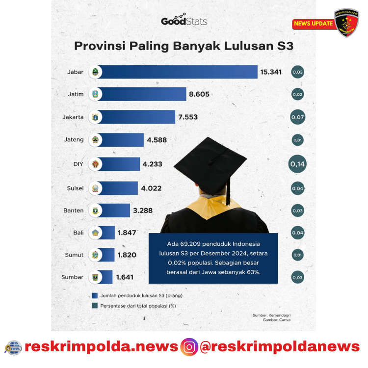 Reskrimpolda.news – Jakarta, 02 April 2025 – Menurut data survey Kemendagri, sebanyak 63% lulusan S3 di Indonesia berasal dari Pulau Jawa. Hal ini mencerminkan dominasi Jawa dalam pendidikan tinggi, dengan lima provinsi di kawasan ini menduduki peringkat teratas. Mengapa demikian?