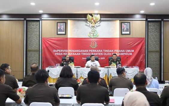Selasa, 14 Oktober 2025, bertempat di Aula Gedung Kejaksaan Tinggi Banten, Kepala Kejaksaan Tinggi Banten Dr. Siswanto, S.H., M.H. beserta jajaran menerima kunjungan Sekretaris Jaksa Agung Muda Tindak Pidana Umum (Sesjampidum) Dr. Undang Mugopal, S.H., M.Hum. bersama tim dalam rangka Supervisi Penanganan Perkara Tindak Pidana Umum.