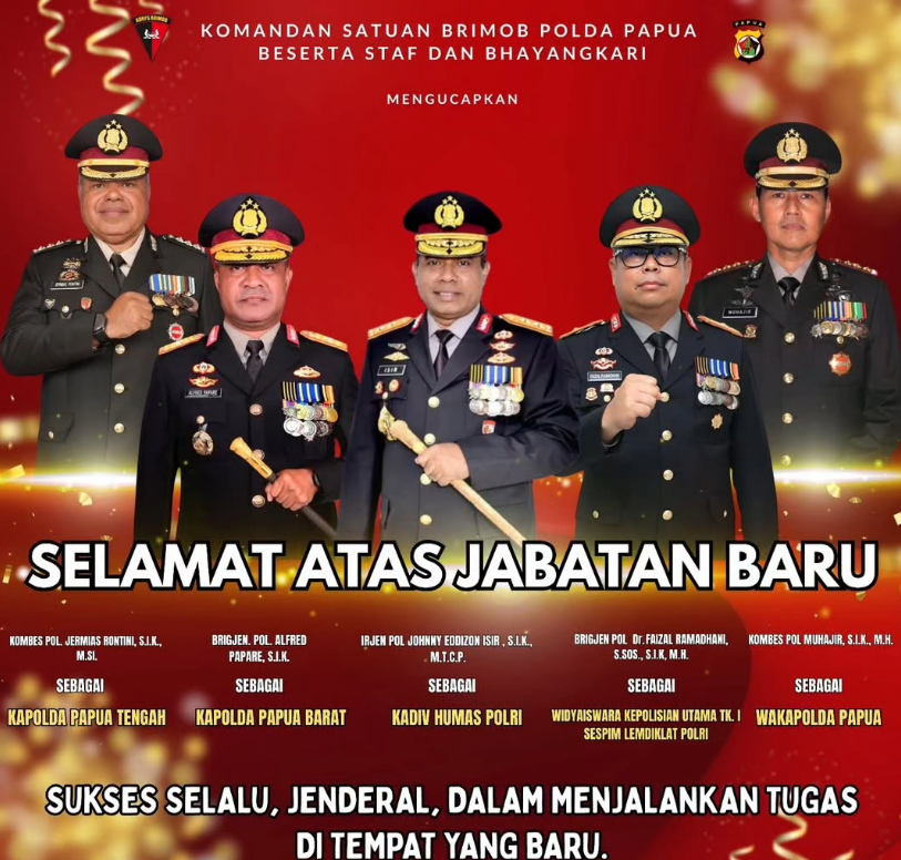 Komandan Satuan Brigade Mobil (Brimob) Polda Papua beserta seluruh jajaran staf dan Bhayangkari menyampaikan ucapan selamat dan penghargaan setinggi-tingginya