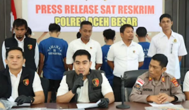 Konferensi pers dipimpin langsung oleh Kepala Satreskrim Polres Aceh Besar, AKP Teguh Prasetyo , didampingi Kasi Humas AKP Satria Pribadi , KBO Satreskrim Ipda M. Hafiq , serta Ps Kanit Idik I Aipda M. Rizal Satria .