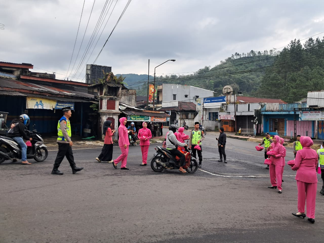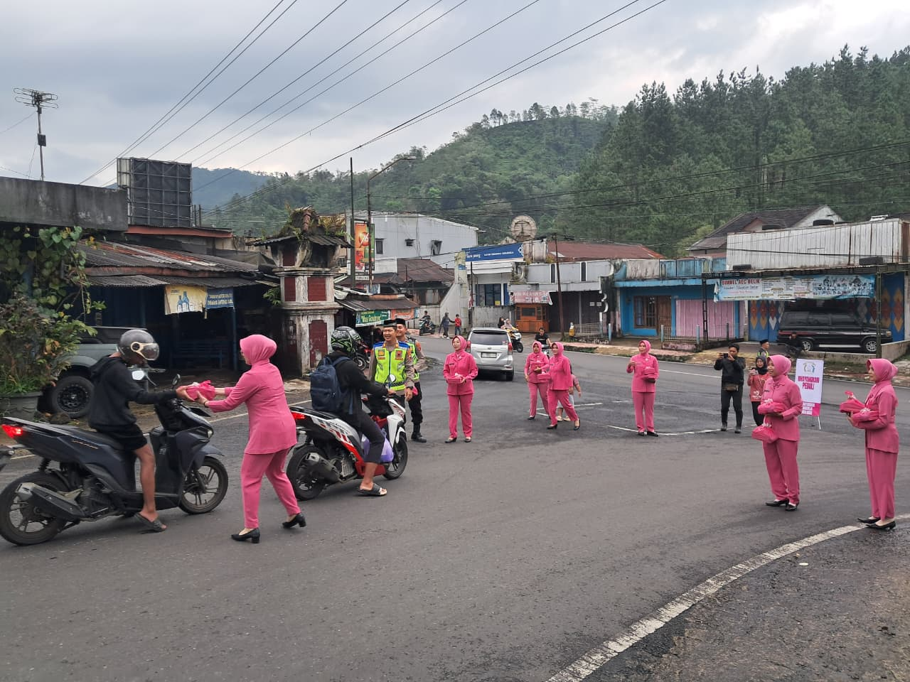 Sebanyak 100 paket takjil dibagikan kepada pengendara dan warga yang melintas menjelang waktu berbuka. Personel Polsek Karangreja dan Bhayangkari turun langsung ke jalan untuk membagikan paket makanan tersebut.