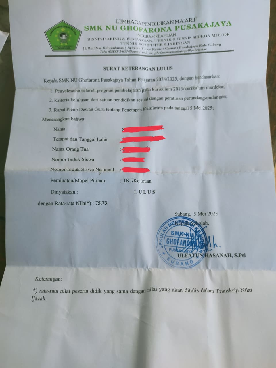 Kali ini sorotan tertuju pada SMK Ghofarana yang berlokasi di Kecamatan Pusakajaya, Kabupaten Subang, Jawa Barat, setelah muncul pengakuan dari salah satu orang tua siswa terkait tunggakan biaya sekolah yang berdampak pada proses administrasi pendidikan anaknya.