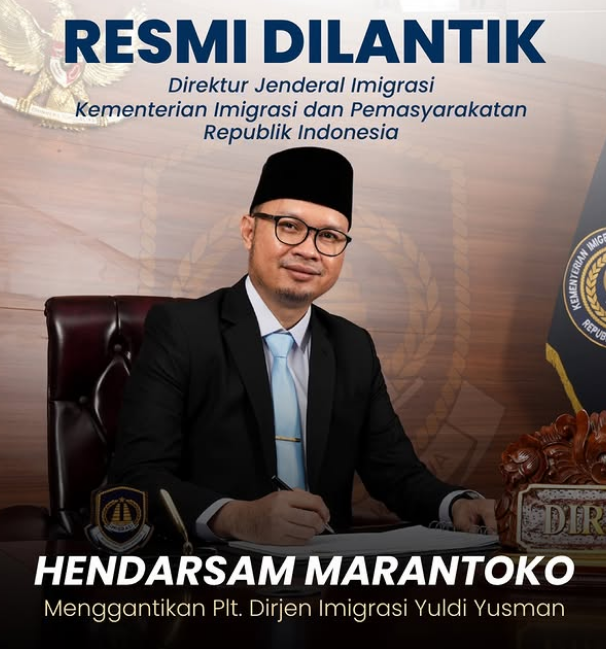 Menteri Imigrasi dan Pemasyarakatan Republik Indonesia, Agus Andrianto, secara resmi melantik Hendarsam Marantoko sebagai Direktur Jenderal (Dirjen) Imigrasi yang baru. Pelantikan ini menandai pergantian kepemimpinan dari Pelaksana Tugas (Plt.) Dirjen sebelumnya, Yuldi Yusman.