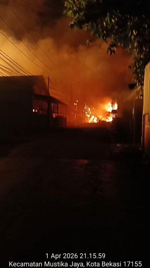 Peristiwa hebat disertai kebakaran besar menggemparkan kawasan Cimuning, Kecamatan Mustikajaya, Kota Bekasi, Jawa Barat, tepatnya di Stasiun Pengisian Bulk Elpiji (SPBE) PT Indogas Andalan Kita, Rabu (1/4/2026) malam.
