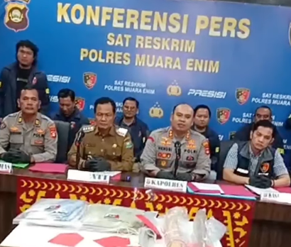 Pengungkapan kasus tersebut disampaikan dalam konferensi pers yang juga disampaikan langsung oleh Bupati Muara Enim . Hingga saat ini, polisi telah mengamankan lima orang tersangka , termasuk satu orang yang berperan sebagai penadah. Sementara itu, dua pelaku lainnya masih dalam daftar pencarian orang (DPO) .